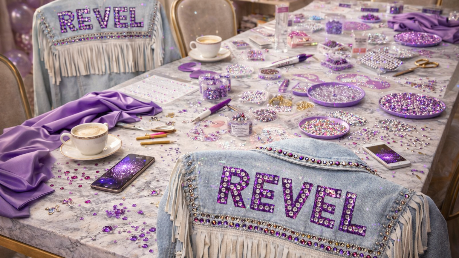 Gather your friends for a private rhinestone embellishment experience — music, laughter, and sparkle included.